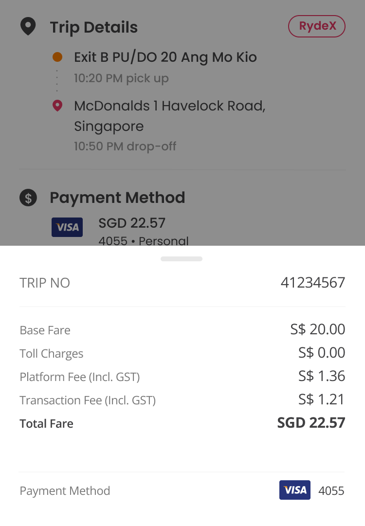 The fee is based on card type and will be shown as “Transaction Fee” on your ride receipt.